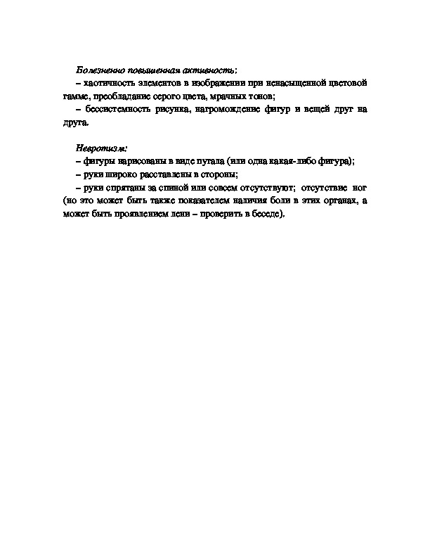 – линия, слабеющая в конце рисования;– сильная усталость после рисования;