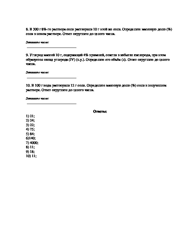___________________________8. В 300 г 8%го раствора соли растворили 10 г этой же соли. Определите массовую долю (%)