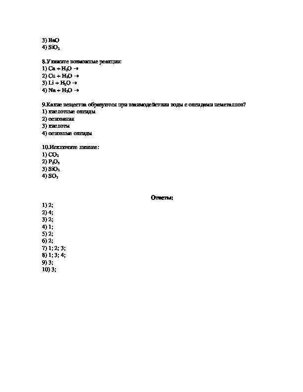 9.Какие вещества образуются при взаимодействии воды с оксидами неметаллов?