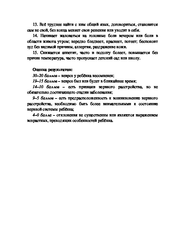 9–5 баллов – есть предрасположенность к возникновению нервного