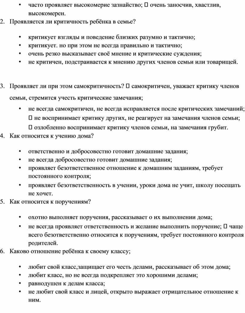 • не всегда самокритичен, не всегда исправляется после критических замечаний; не воспринимает критику других, не реагирует на замечания членов семьи; озлобленно воспринимает критику членов семьи, на замечания грубит.