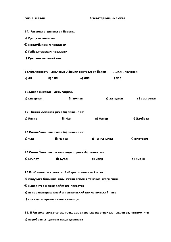 в) молочай, алоэ, черепаха,гиена, шакал 3-экваториальные леса