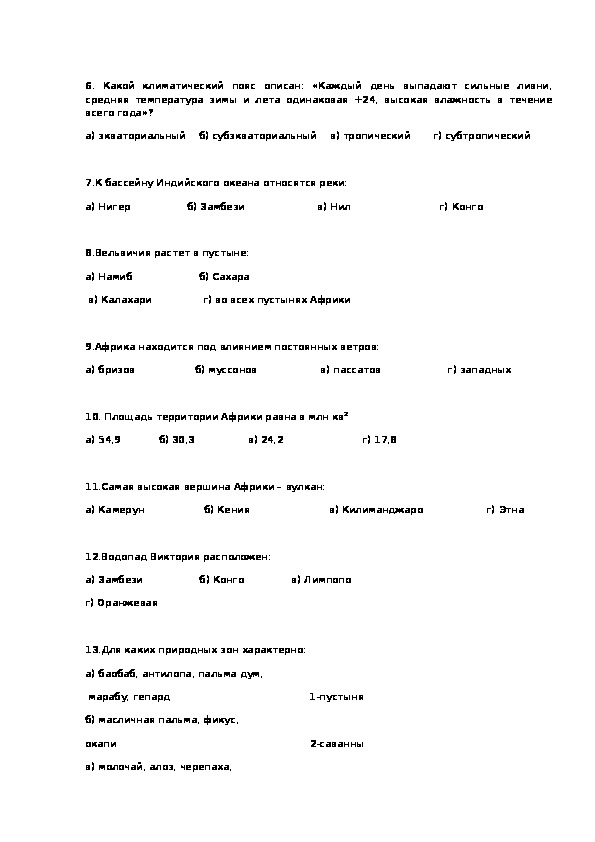 г) Каспийское6. Какой климатический пояс описан: «Каждый день выпадают сильные ливни,