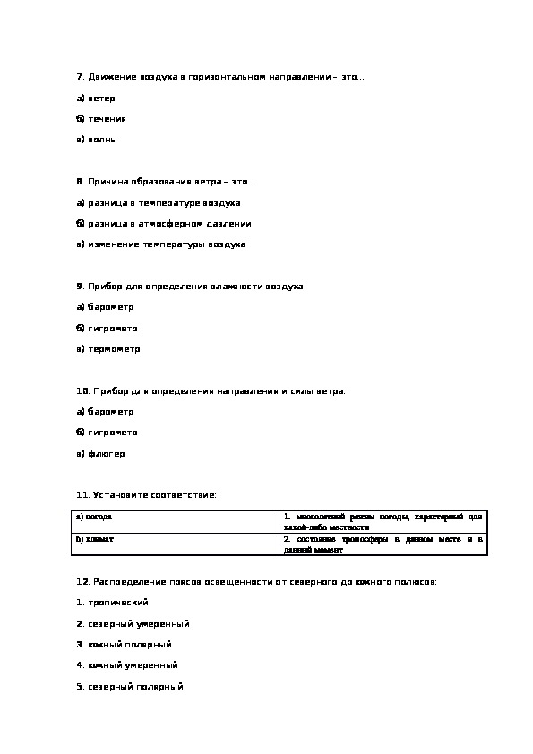 в) термометр7. Движение воздуха в горизонтальном направлении – это…