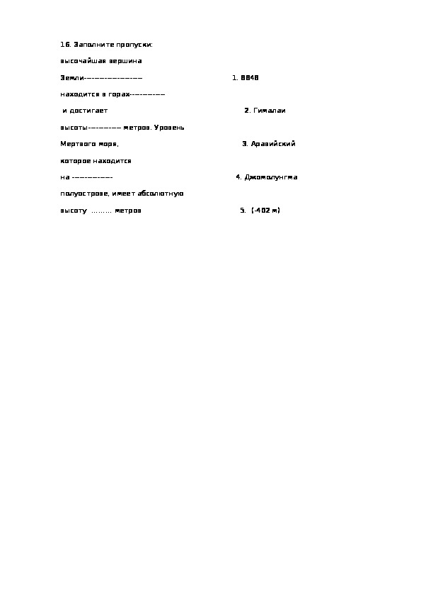 д) Фудзияма 5. Аппенинский полуостров16. Заполните пропуски: