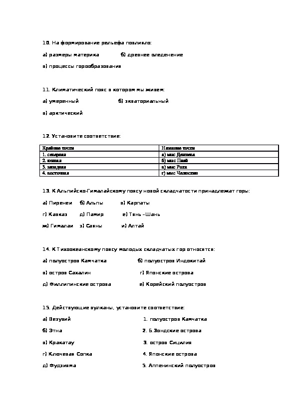 материка10. На формирование рельефа повлияло: