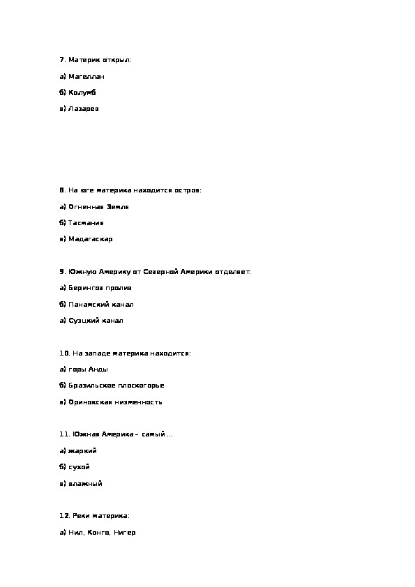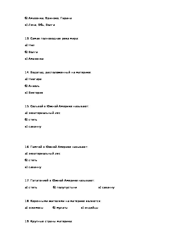 19. Крупные страны материка:а) Чили, Перу, Бразилия