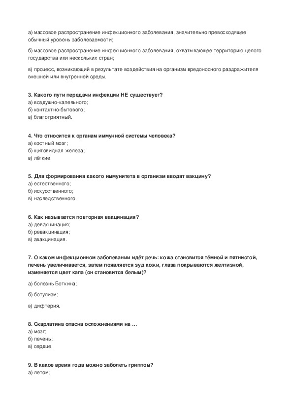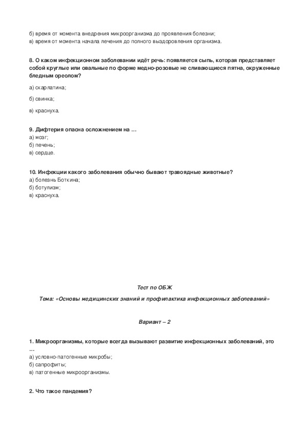 Для проверки знаний по теме "Основы медицинских знаний и профилактика инфекционных заболеваний"Тест по ОБЖ