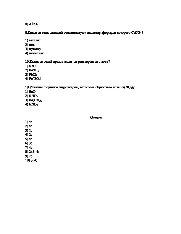 8.Какие из этих названий соответствуют веществу, формула которого CaCO3?