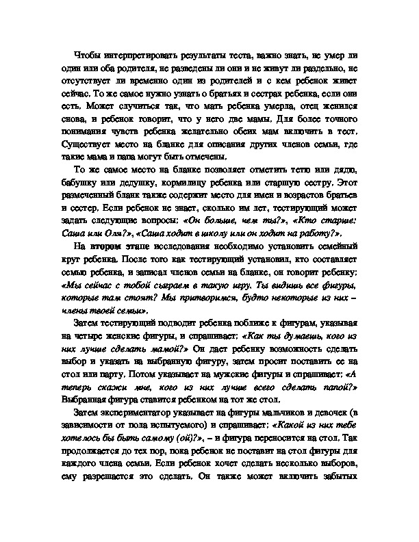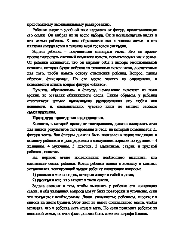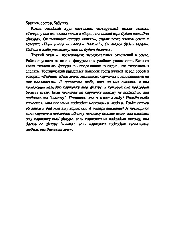 тестовой ситуации семейная группа необязательно должна