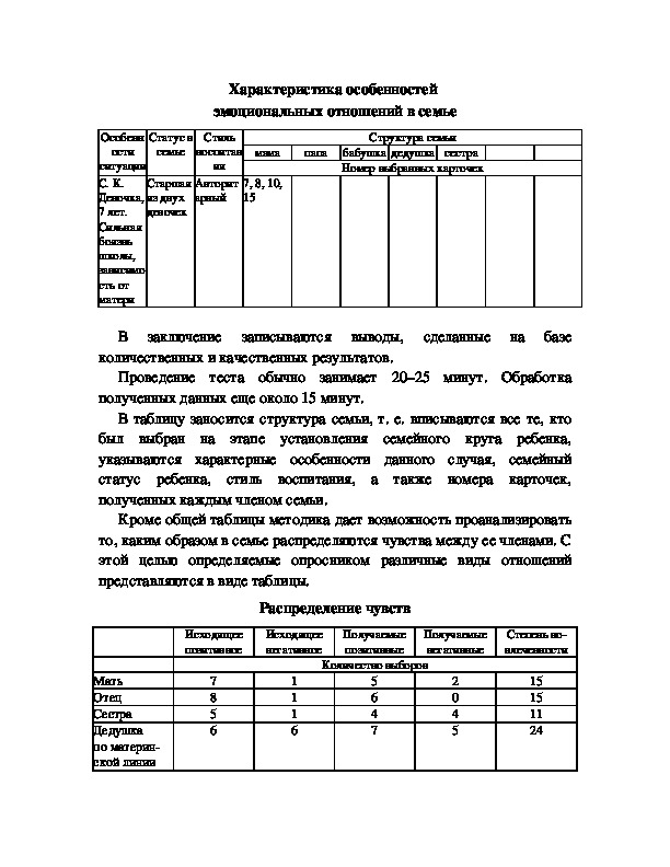 особенностей взаимоотношения ребенка и членов его семьи как