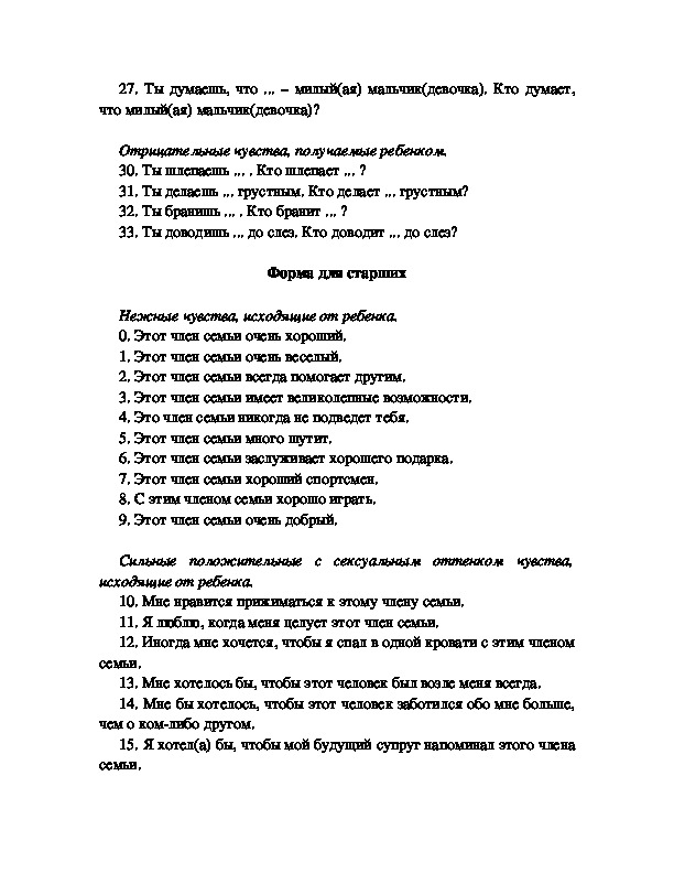 2) отрицательные чувства. Оба вида исходят от ребенка и