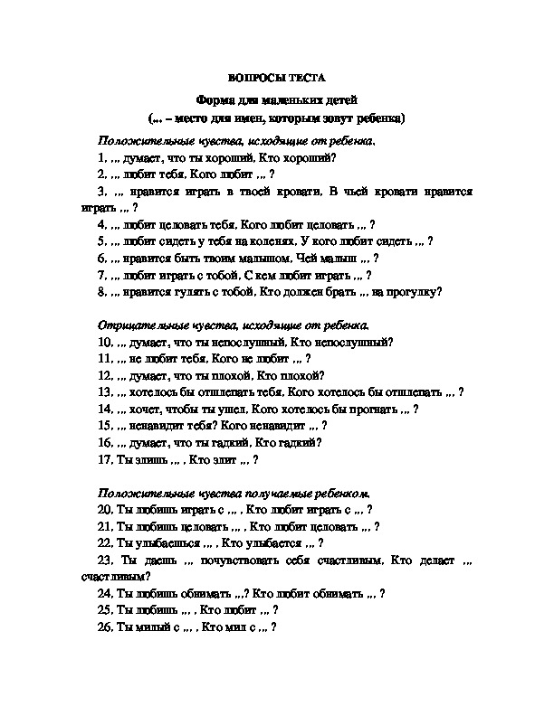 установился, тестирующий задает ребенку следующие вопросы: