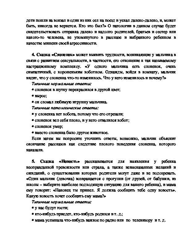 проективная методика, содержащая ряд историйсказок, направленных на