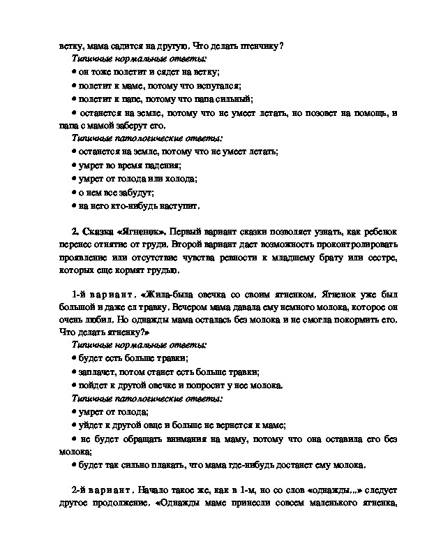 2. Сказка «Ягненок». Первый вариант сказки позволяет узнать, как ребенок