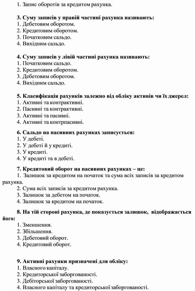 1. Залишок за кредитом на початок та сума всіх записів за кредитом рахунка.