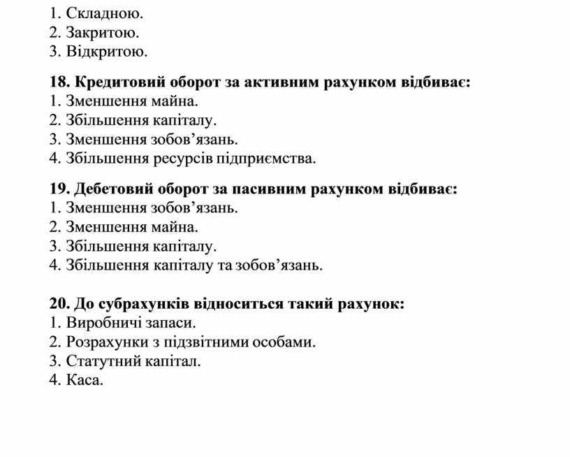 19. Дебетовий оборот за пасивним рахунком відбиває: