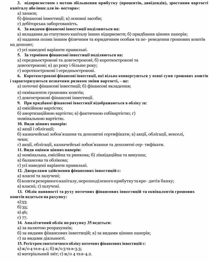б) за видами фінансових інвестицій; в) за видами цінних паперів;