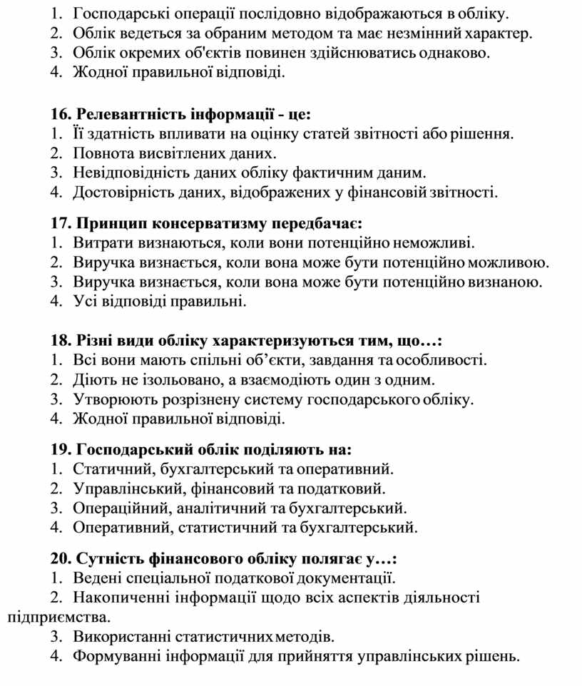 Тести до теми 3: Бухгалтерський облік у сучасній системі управління суб’єктом господарювання