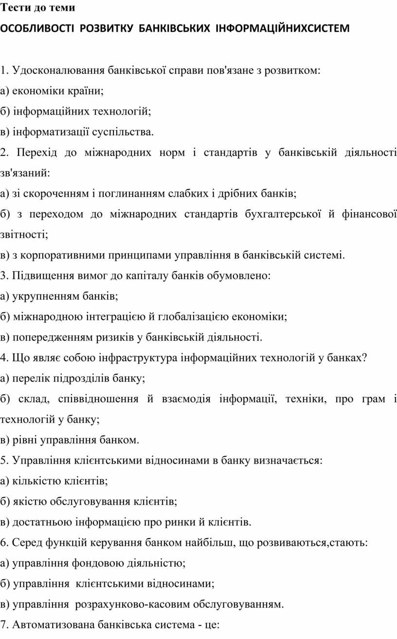 1. Удосконалювання банківської справи пов'язане з розвитком: