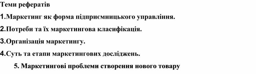 5. Маркетингові проблеми створення нового товару