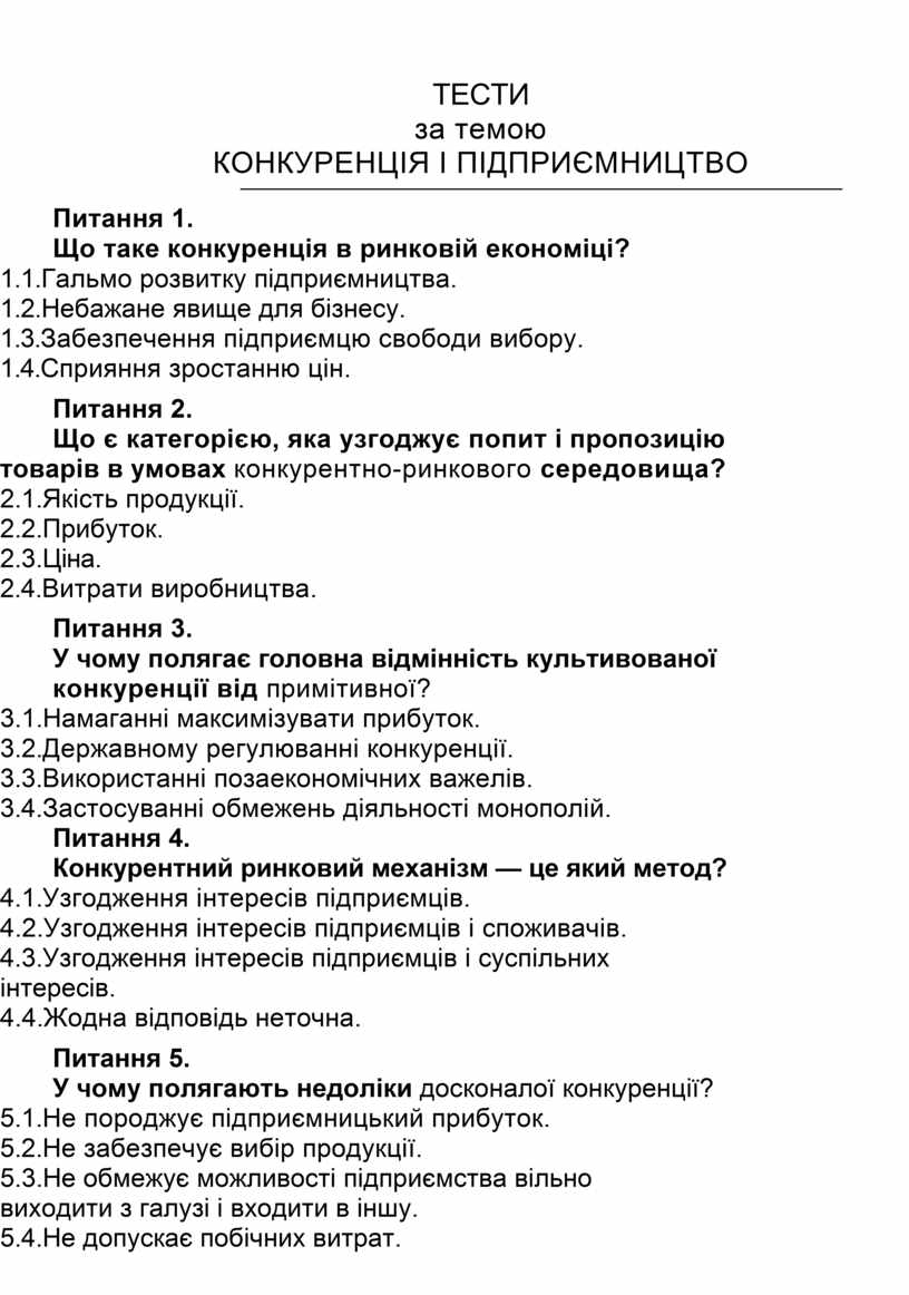 КОНКУРЕНЦІЯ І ПІДПРИЄМНИЦТВО