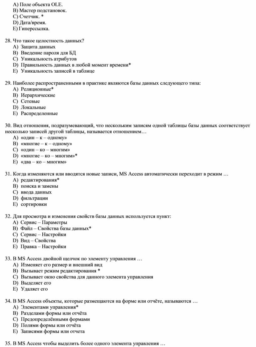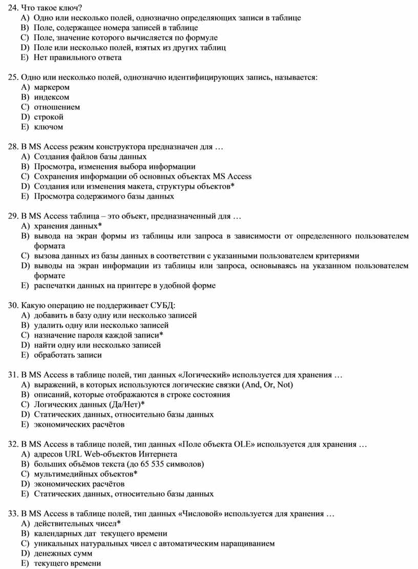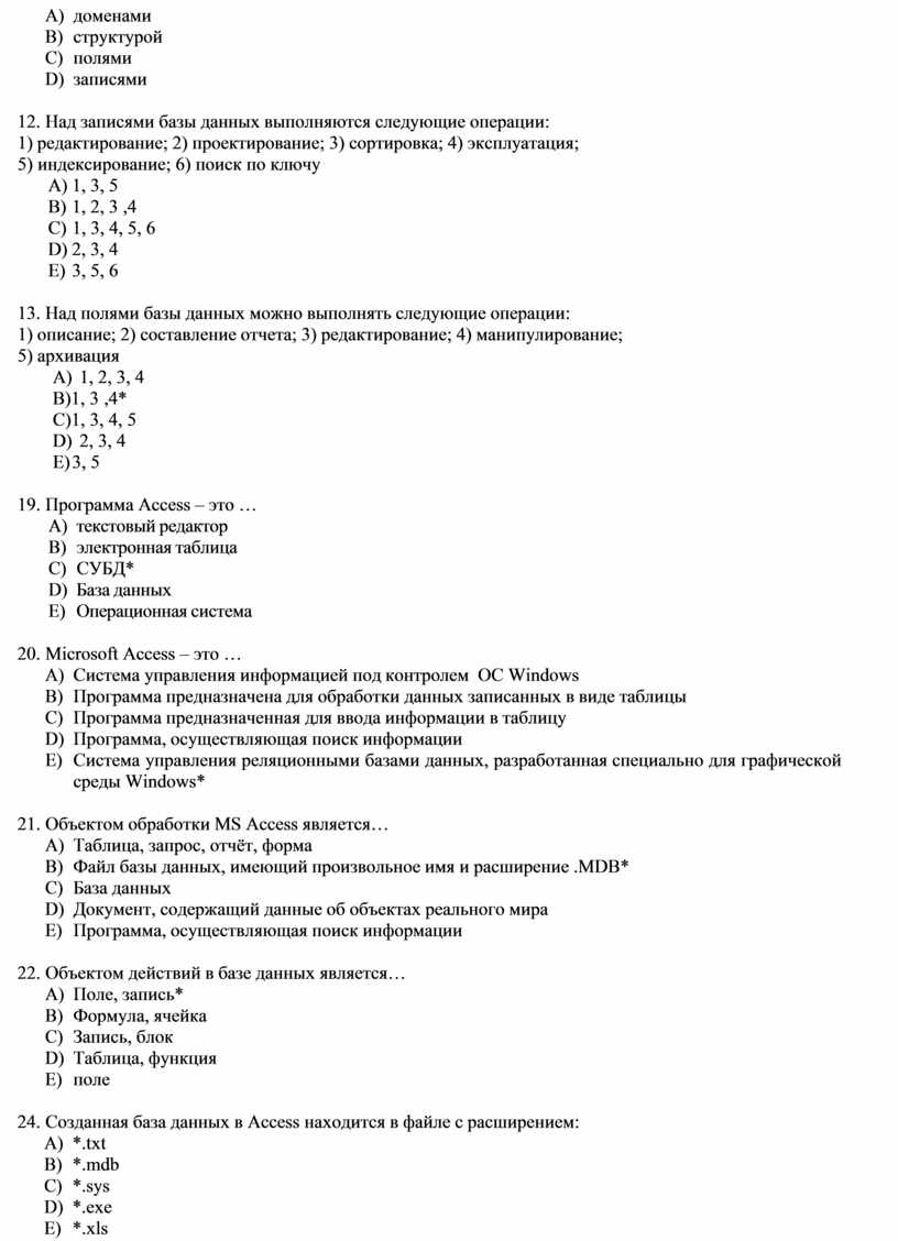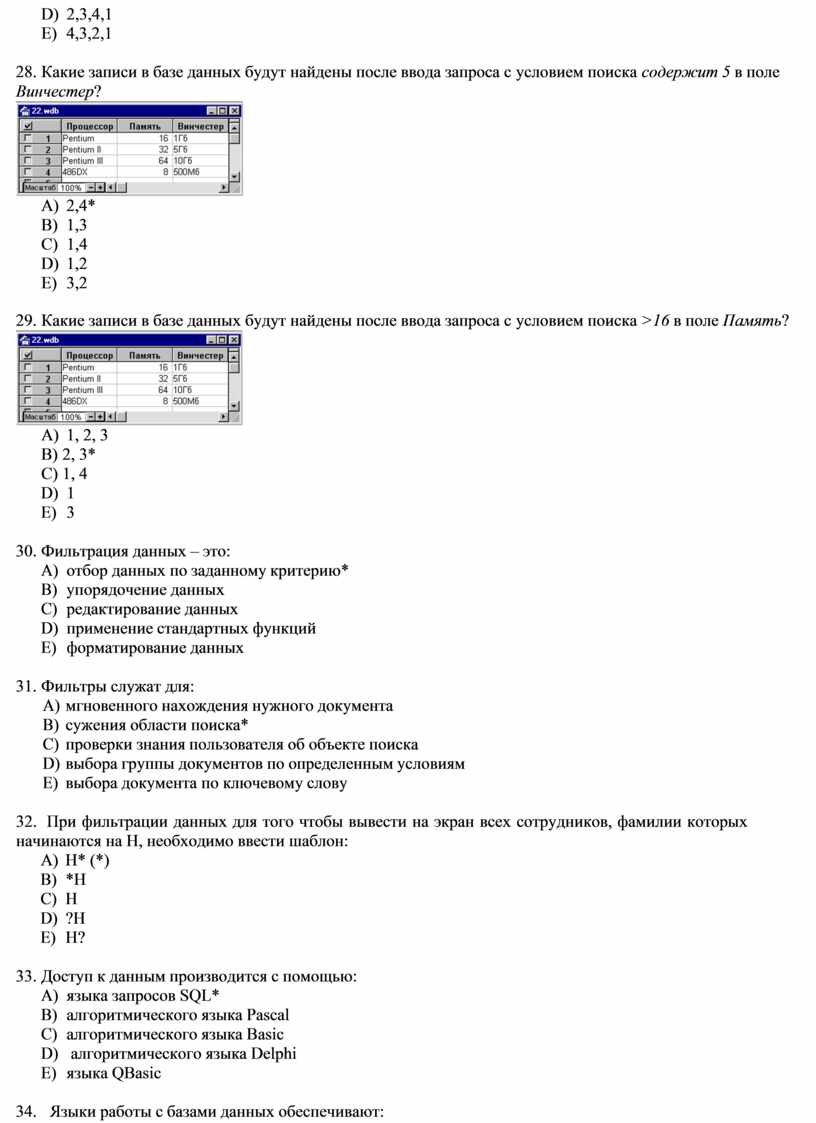 5) индексирование; 6) поиск по ключу A) 1, 3, 5