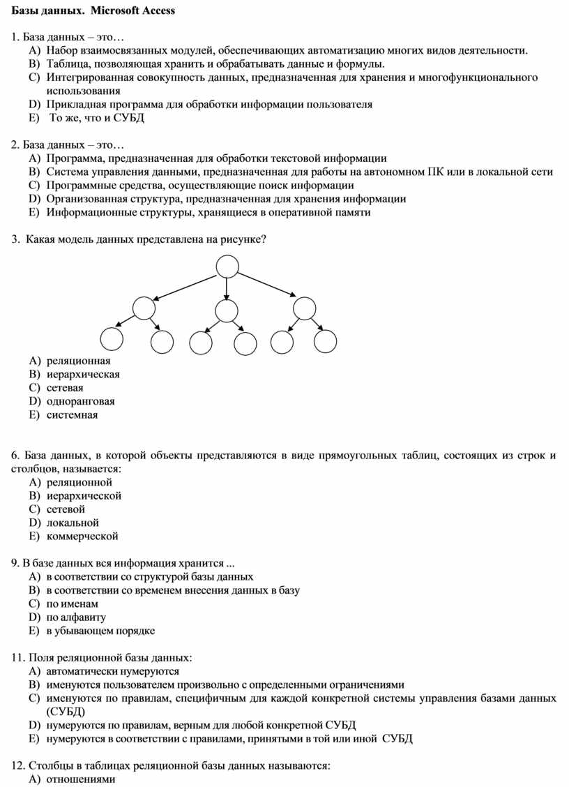 6. База данных, в которой объекты представляются в виде прямоугольных таблиц, состоящих из строк и столбцов, называется: