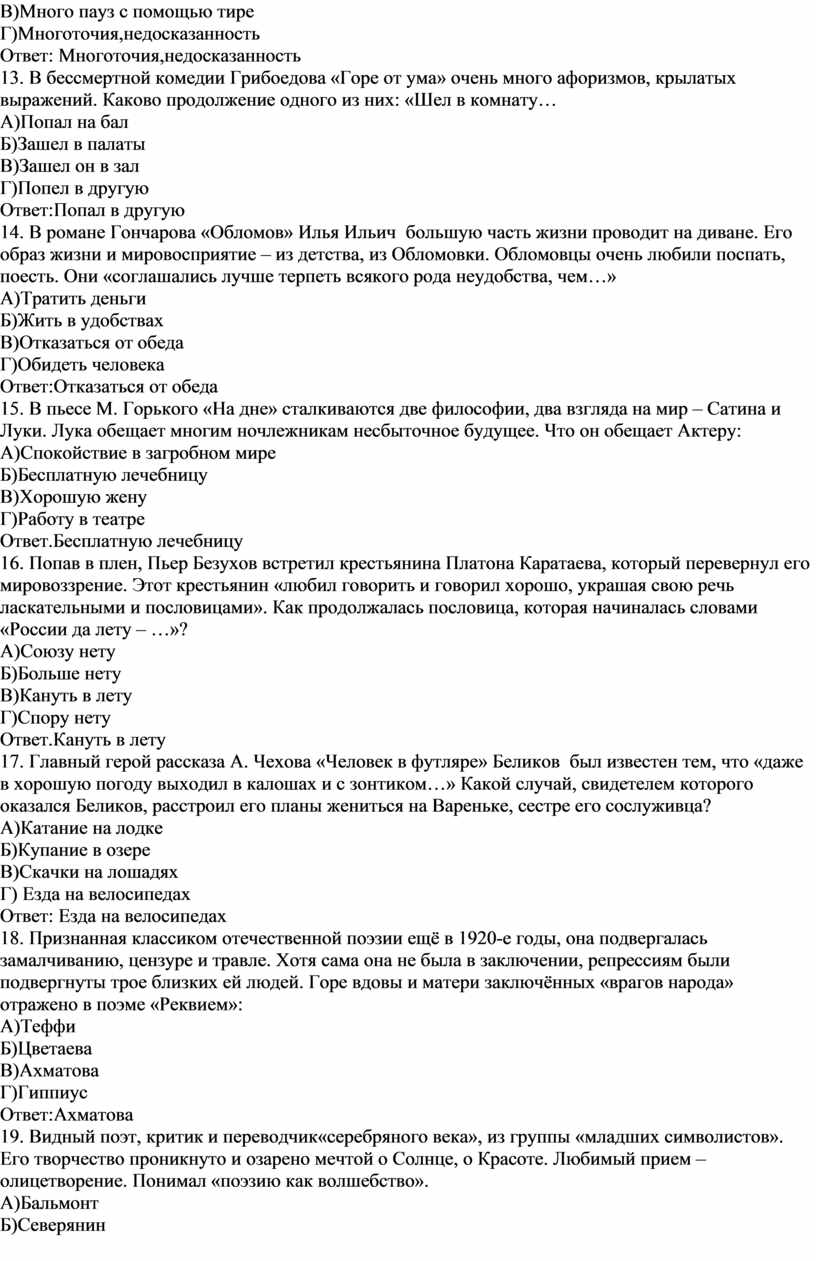 17. Главный герой рассказа А. Чехова «Человек в футляре» Беликов был известен тем, что «даже в хорошую погоду выходил в калошах и с зонтиком…» Какой случай, свидетелем которого оказался Беликов, расстроил его планы жениться на Вареньке, сестре его сослуживца?