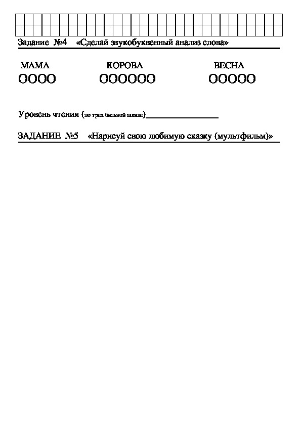 Задание №3 «Напиши цифры» (письмо под диктовку воспитателя)Задание №4 «Сделай звукобуквенный анализ слова»