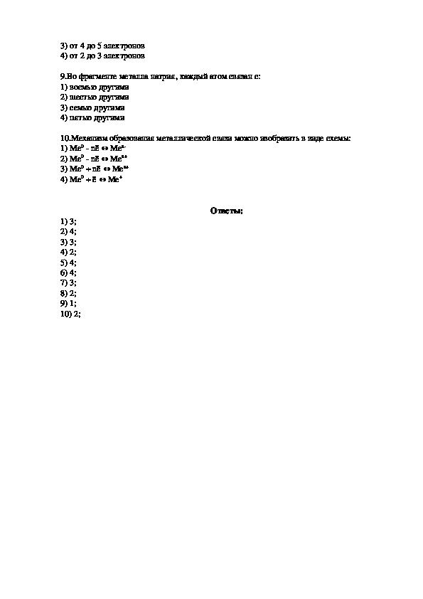 Тест на тему: «Металлическая связь»