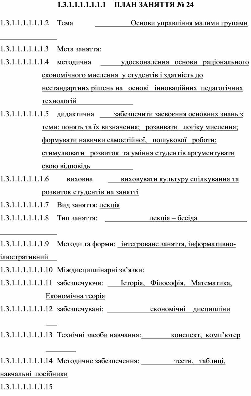 ПЛАН ЗАНЯТТЯ № 40