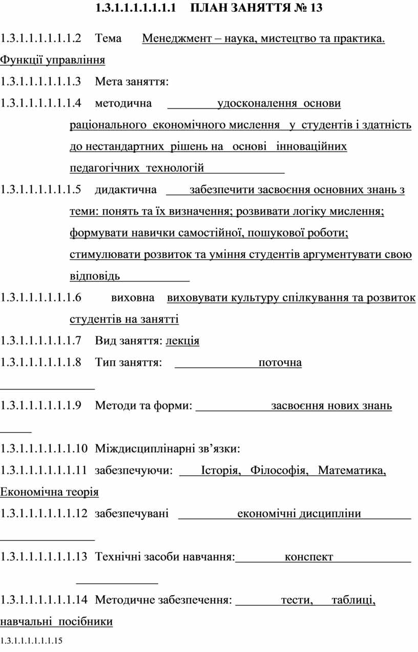 ПЛАН ЗАНЯТТЯ № 13