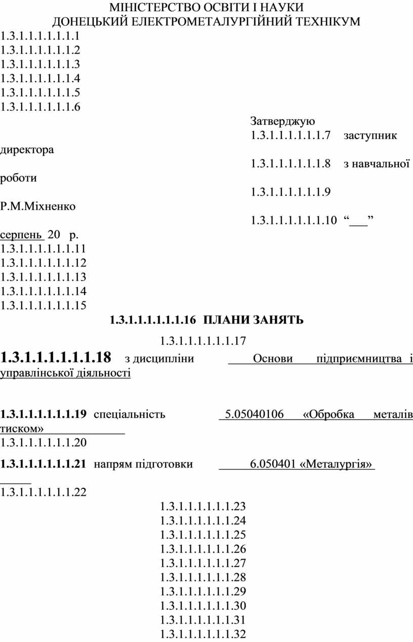 Плани занять Донецького електрометалургійного технікуму