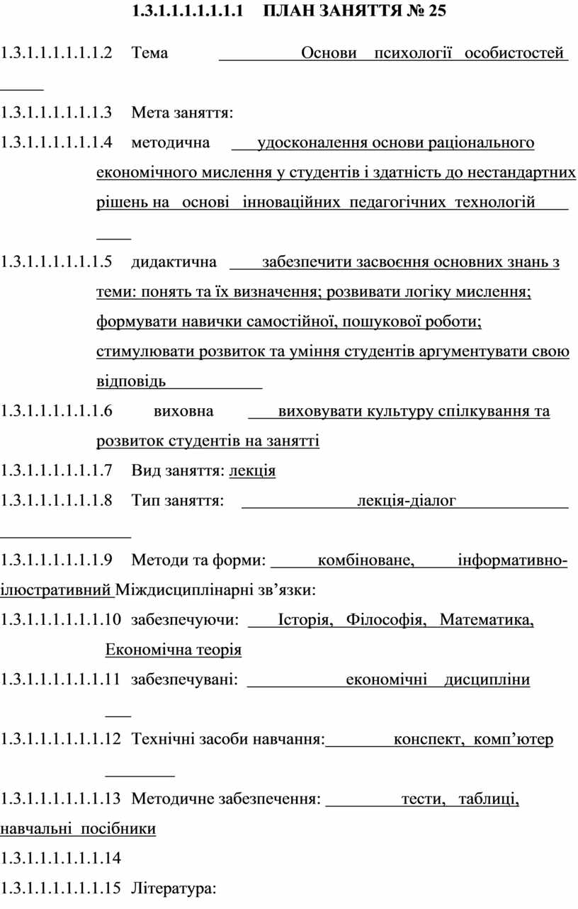 ПЛАН ЗАНЯТТЯ № 18