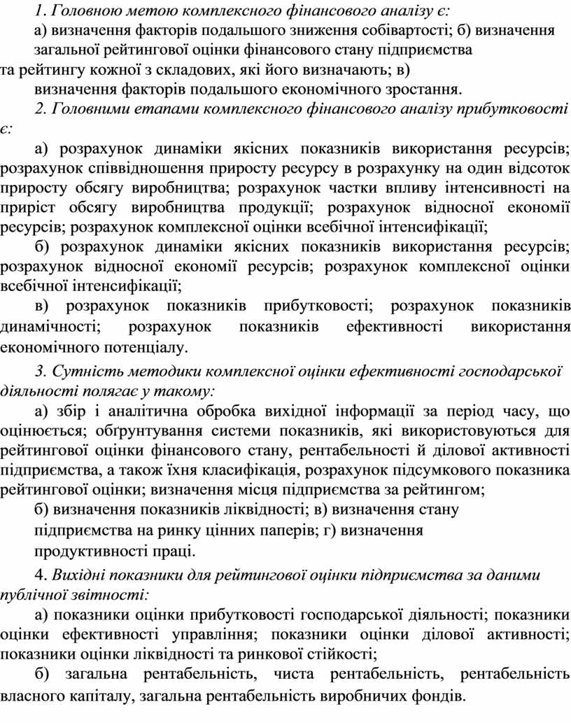 3. Сутність методики комплексної оцінки ефективності господарської діяльності полягає у такому:
