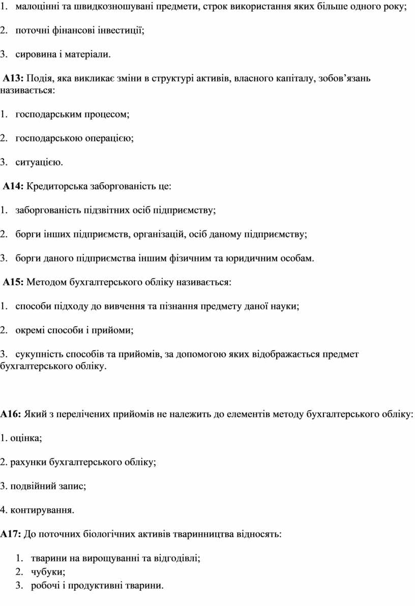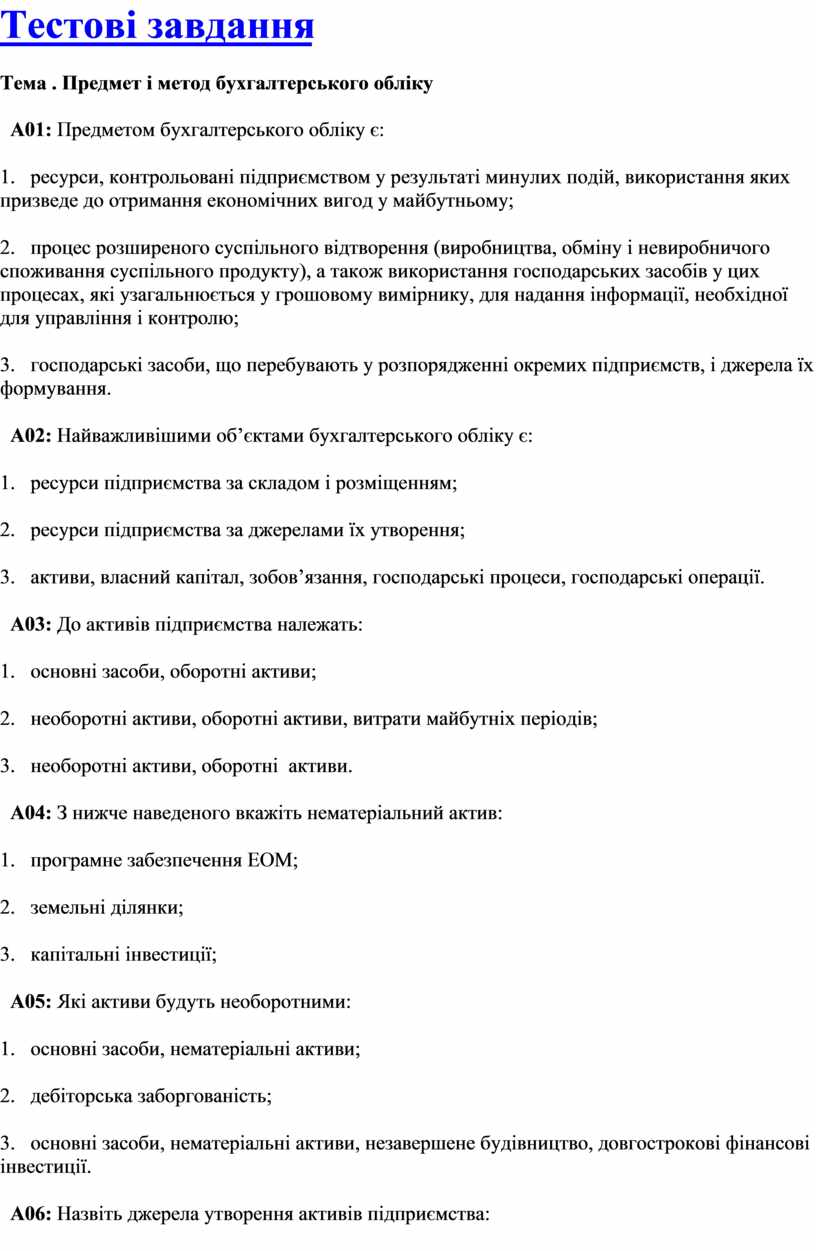 Тестові завдання Тема . Предмет і метод бухгалтерського обліку
