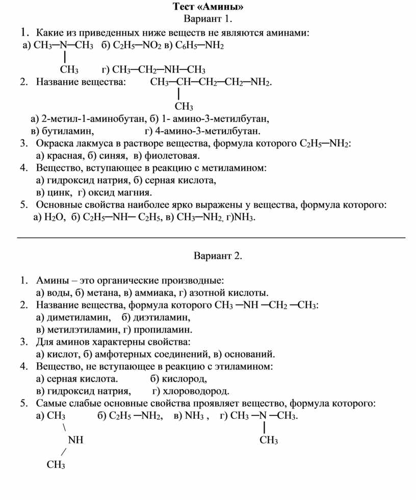 а) CH3 б) C2H5 ─NH2, в) NH3 , г) CH3 ─N ─CH3.