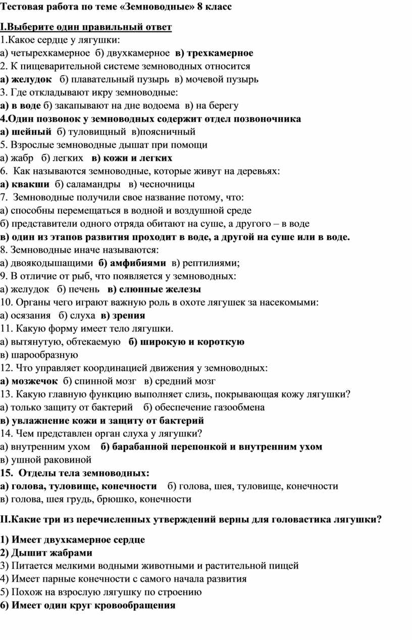 Тестовая работа по теме «Земноводные» 8 класс