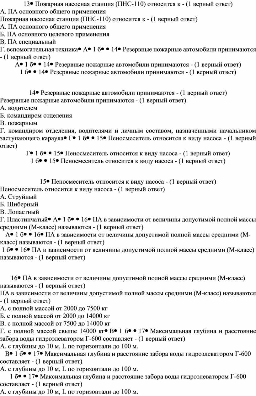 Пожарная насосная станция (ПНС-110) относится к - (1 верный ответ) А. ПА основного общего применения Б. ПА основного целевого применения В. ПА специальный Г. вспомогательная техника |