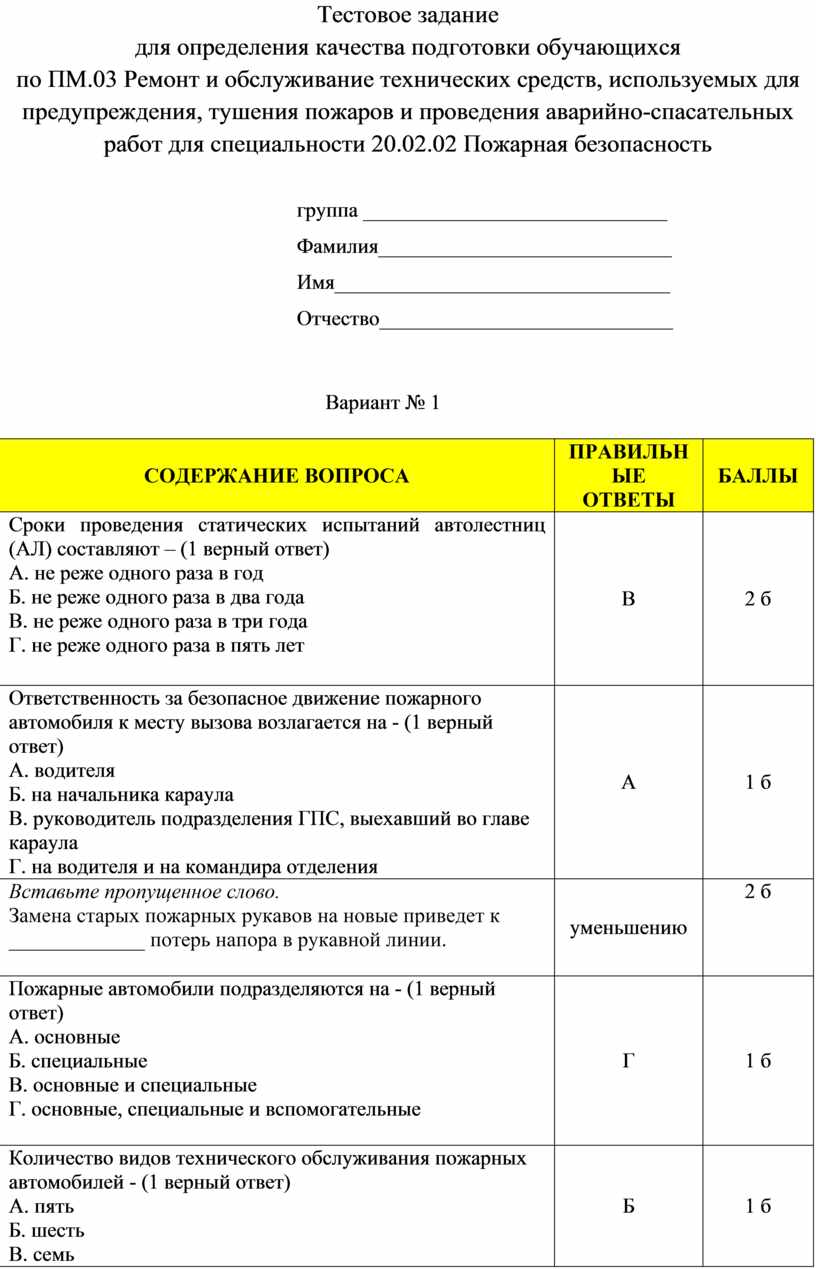 по ПМ.03 Ремонт и обслуживание технических средств, используемых для предупреждения, тушения пожаров и проведения аварийно-спасательных работ для специальности 20.02.02 Пожарная безопасность