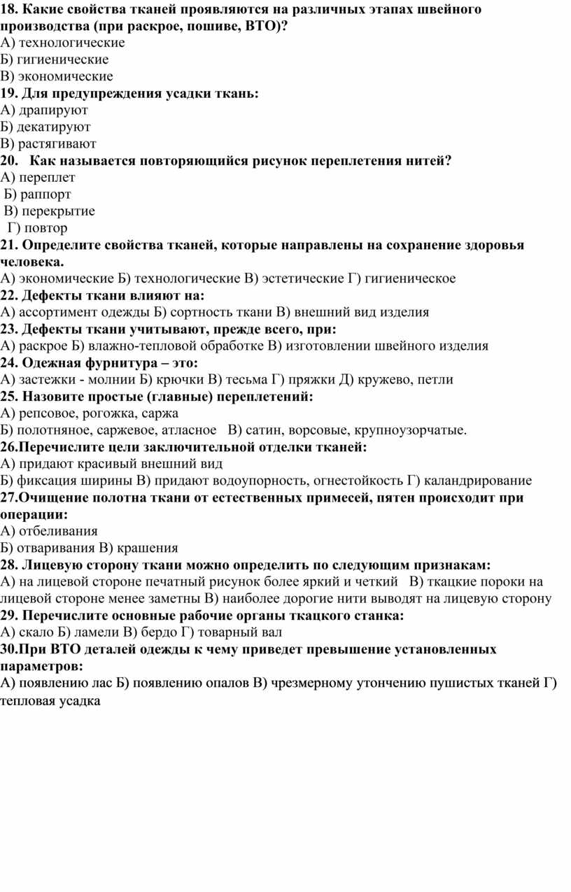 18. Какие свойства тканей проявляются на различных этапах швейного производства (при раскрое, пошиве, ВТО)?