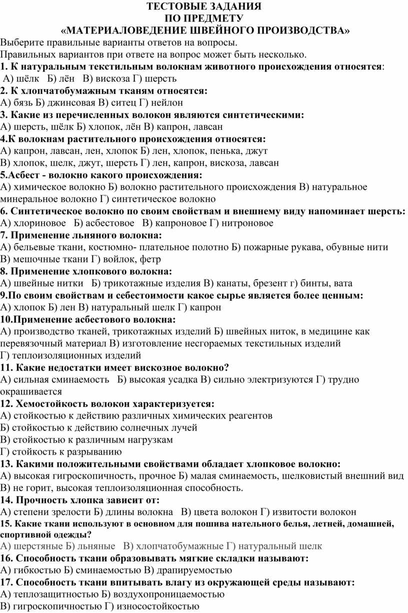 А) шерстяные Б) льняные В) хлопчатобумажные Г) натуральный шелк