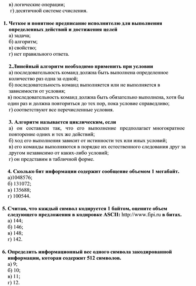 8. Считая, что каждый символ кодируется 1 байтом, оцените объем следующего предложения в кодировке ASCII: http://www.fipi.ru в битах. а) 144;