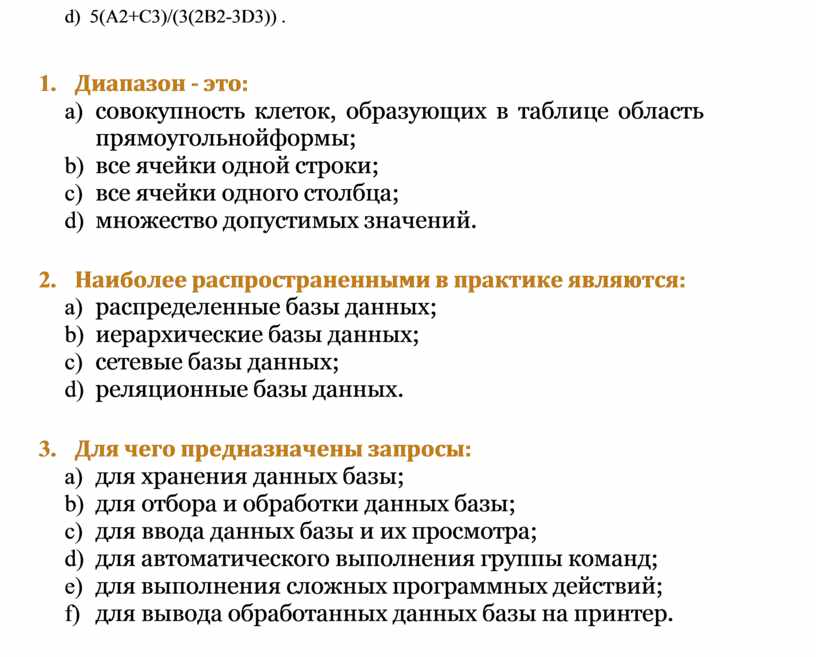 a) совокупность клеток, образующих в таблице область прямоугольной формы;