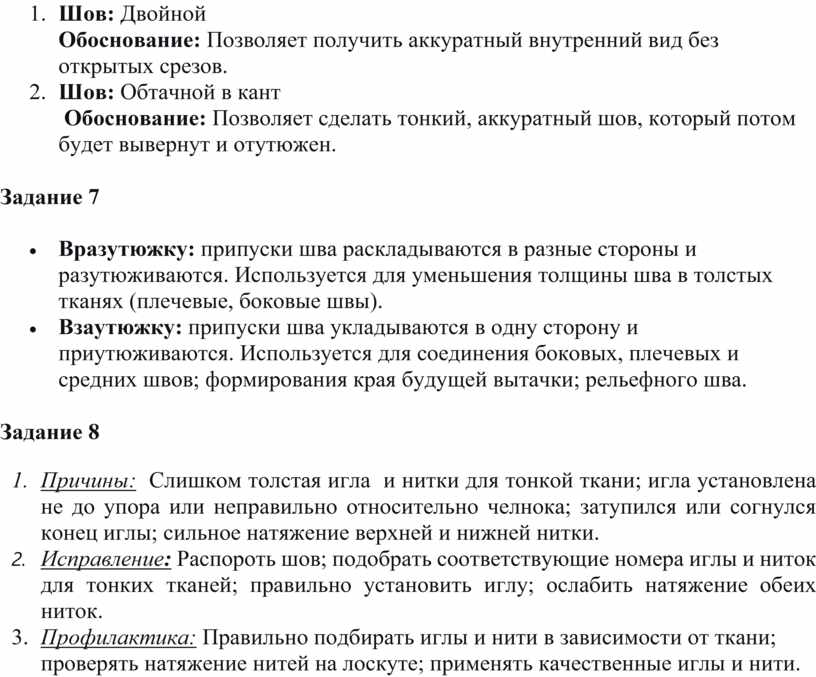 3. Профилактика: Правильно подбирать иглы и нити в зависимости от ткани; проверять натяжение нитей на лоскуте; применять качественные иглы и нити.