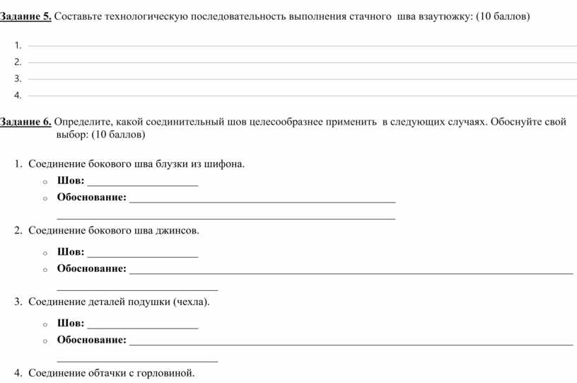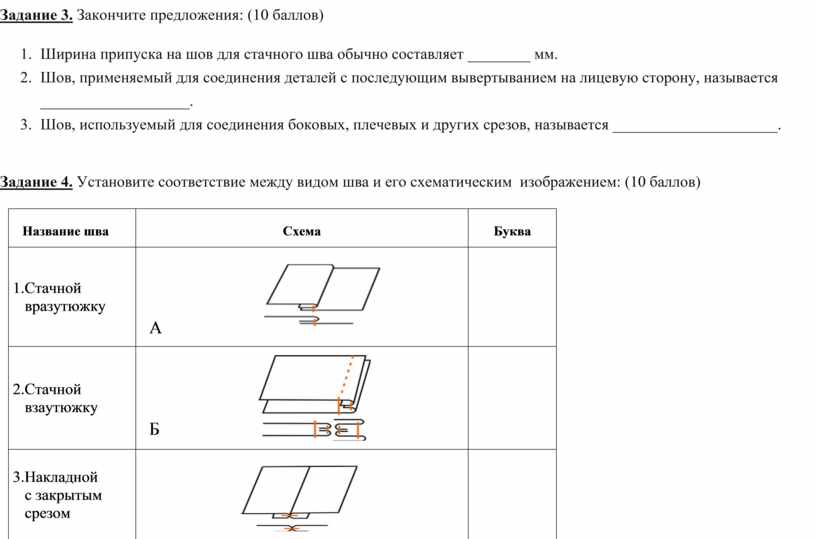 Задание 5. Составьте технологическую последовательность выполнения стачного шва взаутюжку: (10 баллов)