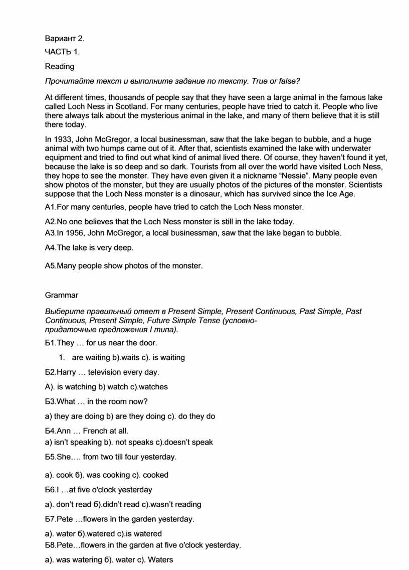 А1.For many centuries, people have tried to catch the Loch Ness monster. |