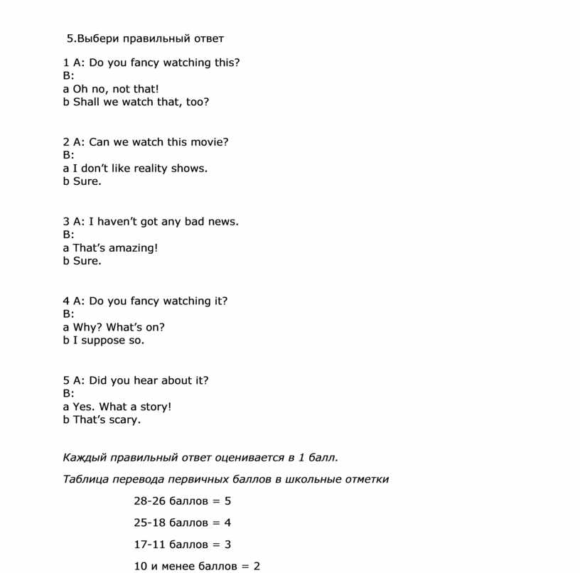 Шкала оценивания. |