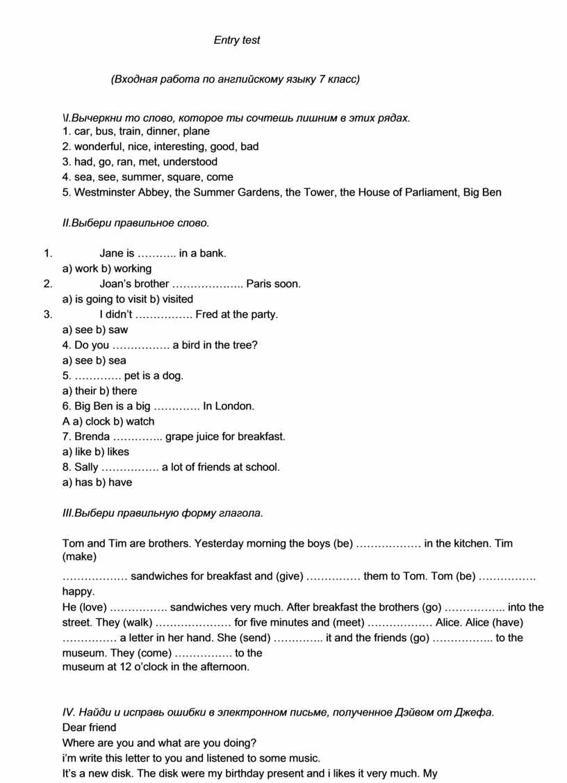 (Входная работа по английскому языку 7 класс) |